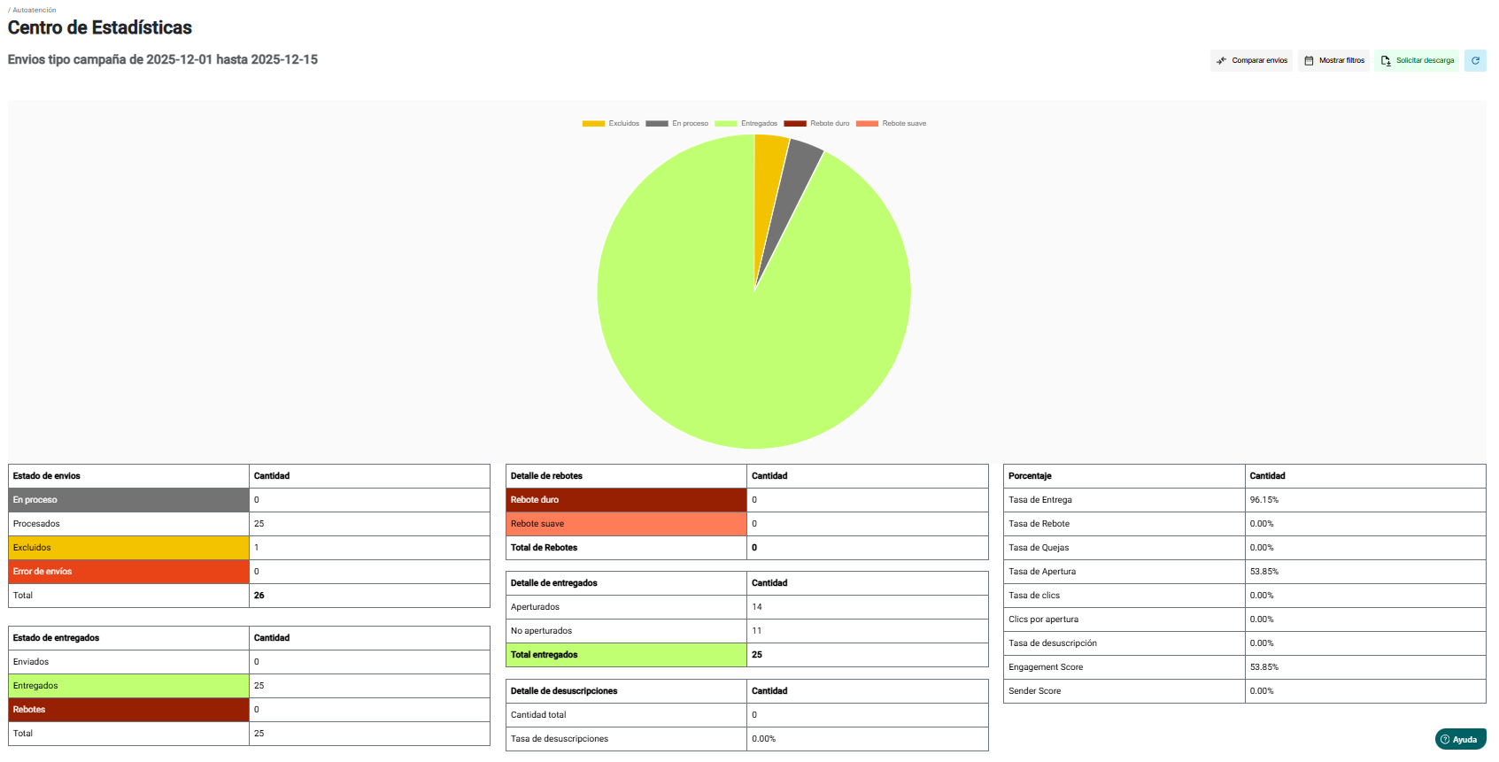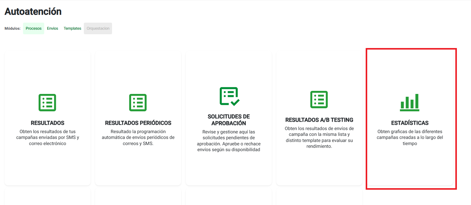 Para acceder a las estadísticas de envíos, dirígete al siguiente menú dentro de la plataforma: