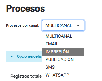 Nota: Solo se mostrarán registros de los canales que la empresa tenga contratados.