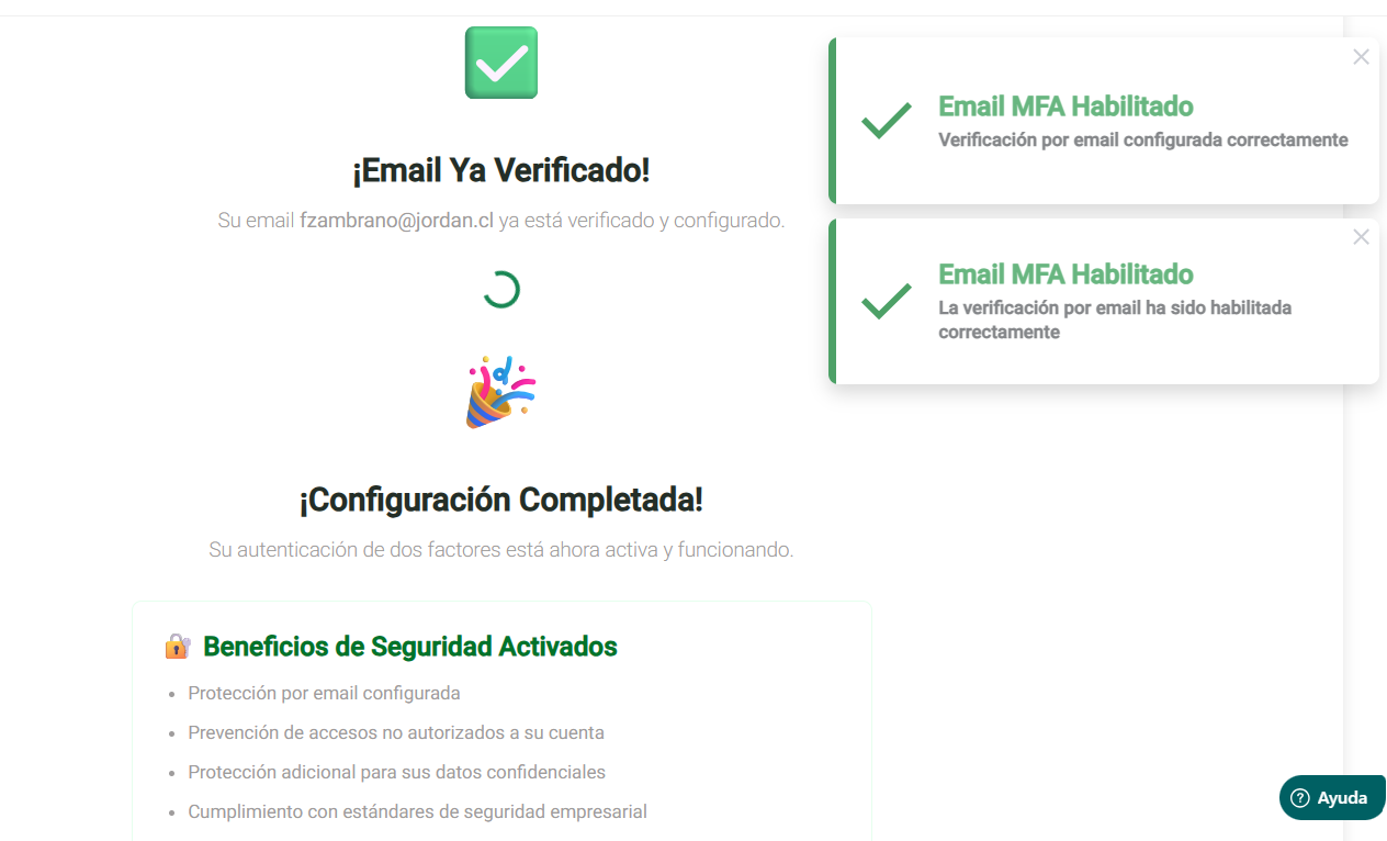 ¡Listo! Tu cuenta ya está protegida con 2FA.